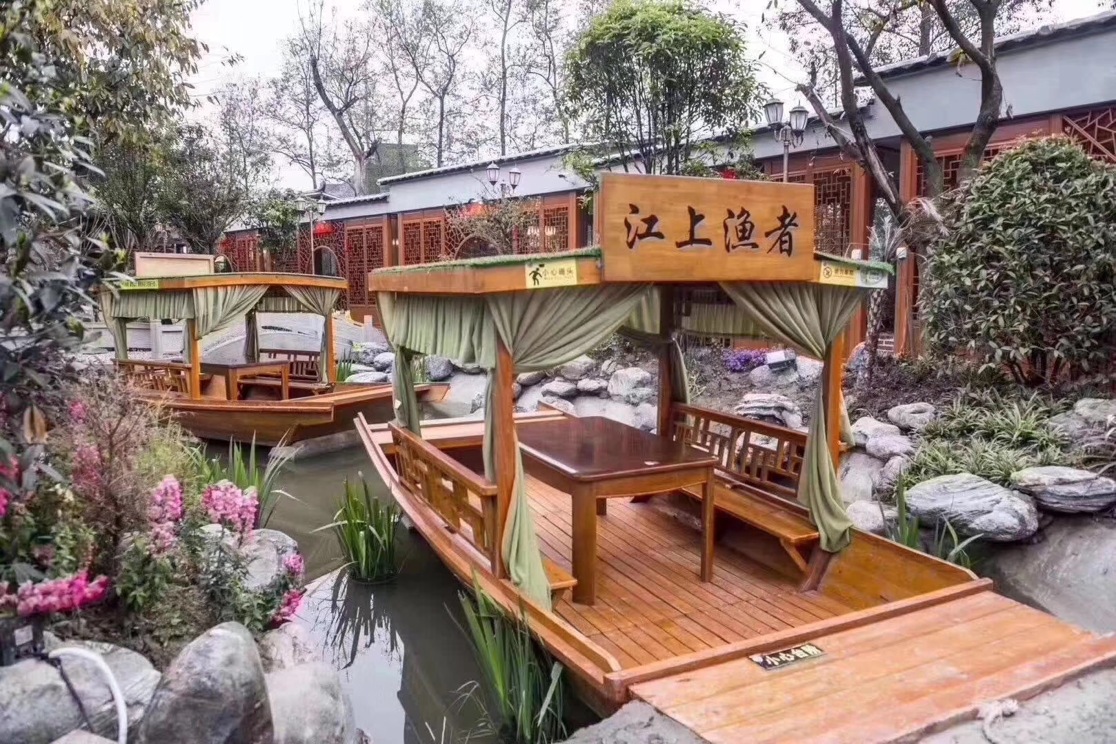 2. 餐飲木船畫(huà)舫船景觀船